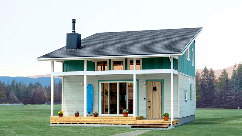 アメリカの平屋住宅をモチーフに、1.5寸の緩勾配の屋根が、現代の子育てにピッタリのシンプルナチュラルなテイストを表現。北米の住宅によく見られる「フロントポーチ」からリビングにつながる部分が「土間」になっており、屋外と屋内の空間を一続きのように楽しめる「プラスα」の価値を生み出すデザインが魅力です。